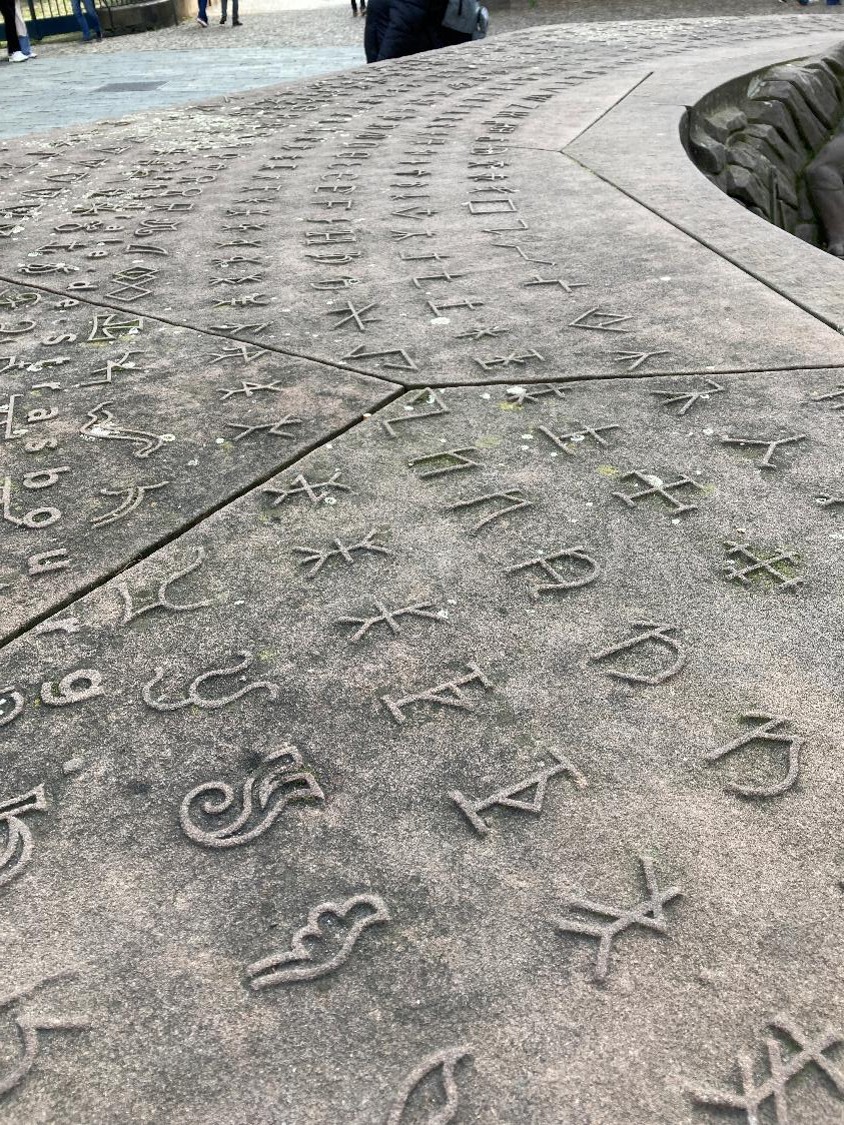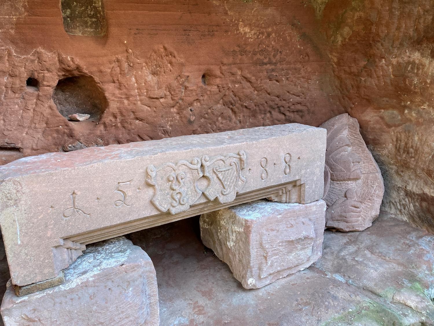 These are the marks of the illiterate medieval workmen who built the cathedral in Strasbourg, so that accurate records could be kept in order to pay them.