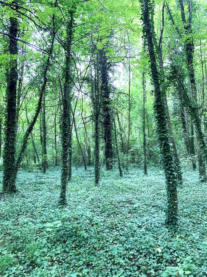 The woods near Lake Balastiere, in Bischheim north of Strasbourg, are filled with lierre (ivy, Hedera helix).
