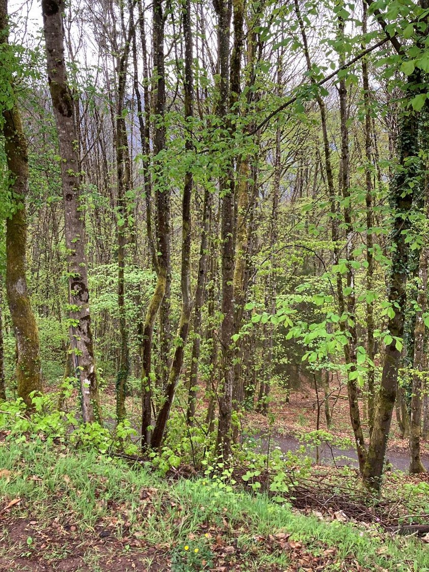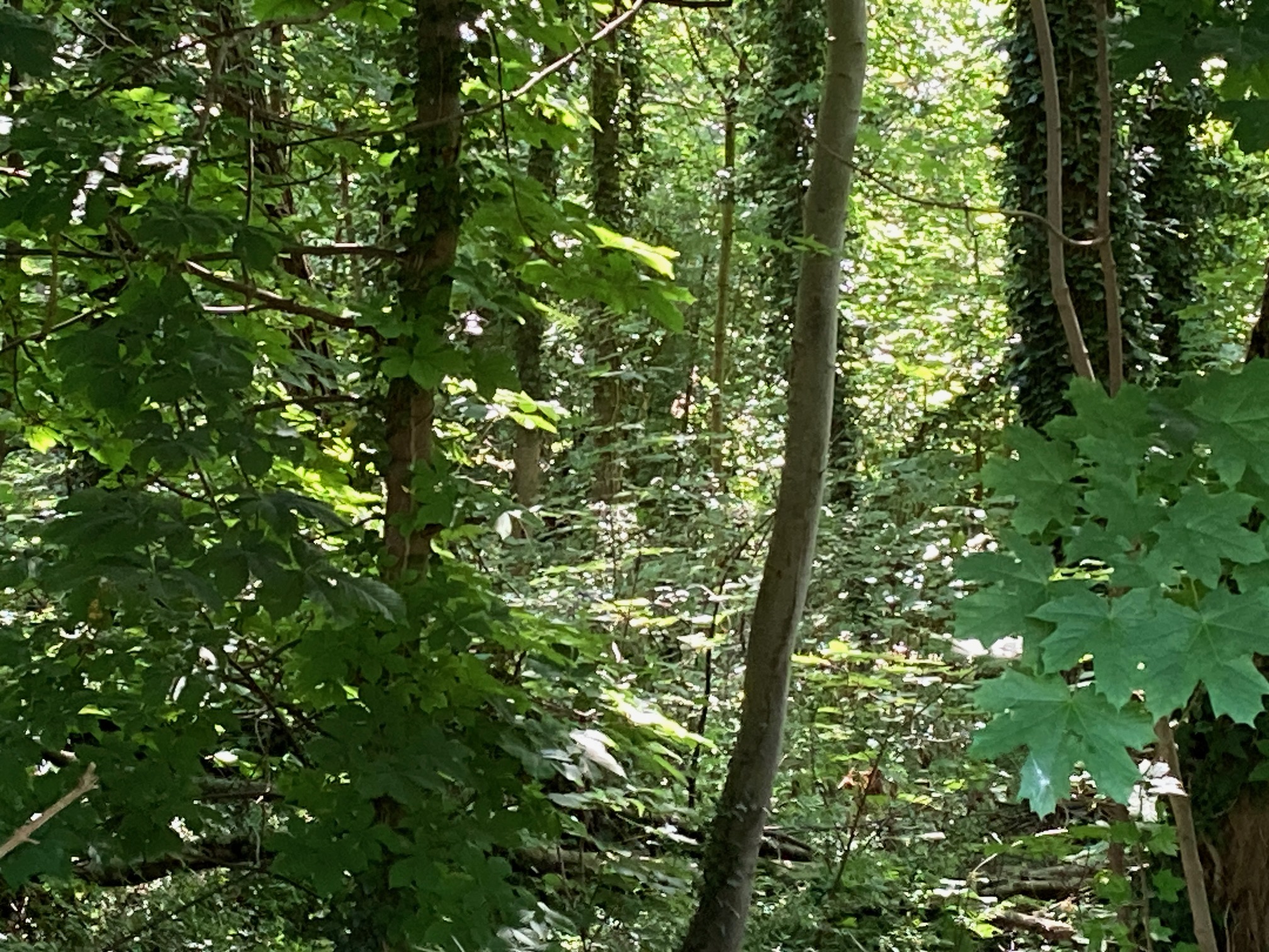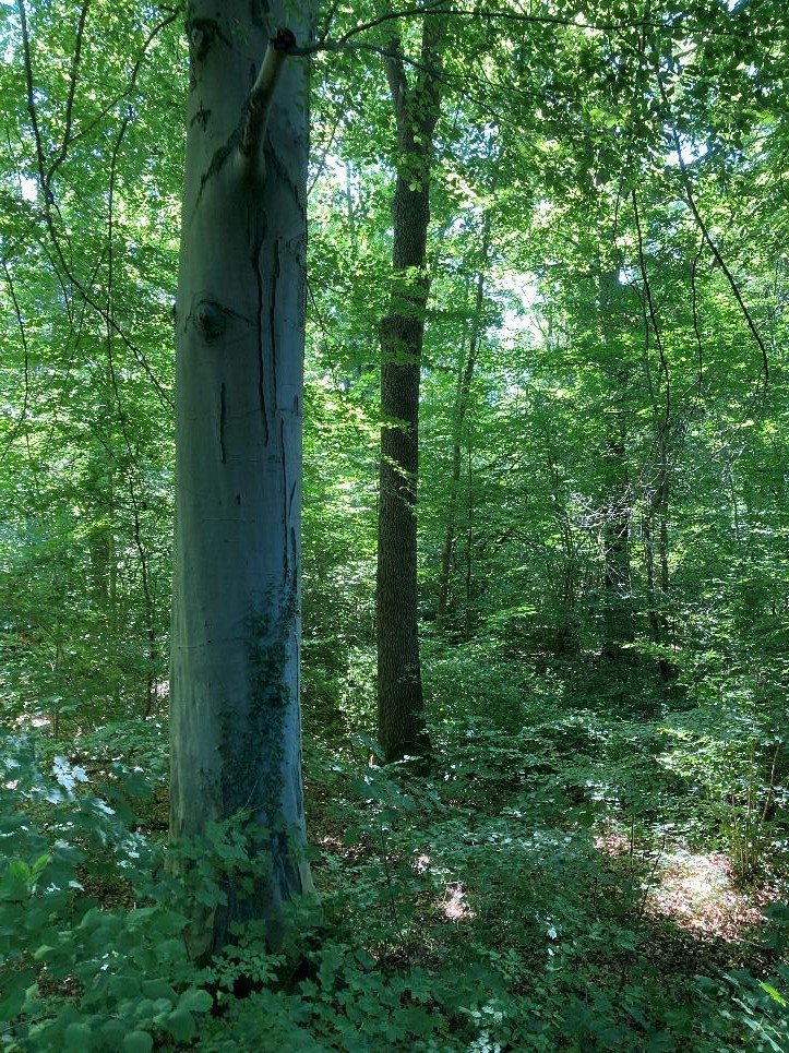 Woodland near Lake Balastiere, Bischheim, north of Strasbourg. This woodland is second-growth but has undergone enough ecological succession that erables (maple trees, Acer pseudoplatanus) and tilleuls (lindens, Tilia heterophylla) dominate the forest.