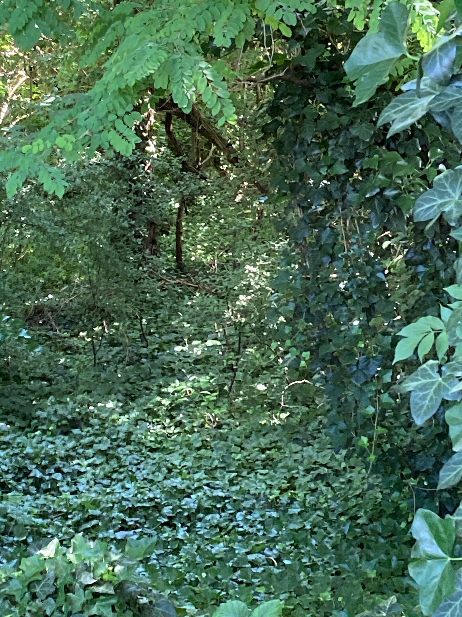 The woods near Lake Balastiere, in Bischheim north of Strasbourg, are filled with lierre (ivy, Hedera helix). At the top you can see leaves of black locust (Robinia pseudoacacia), an invasive tree from North America.