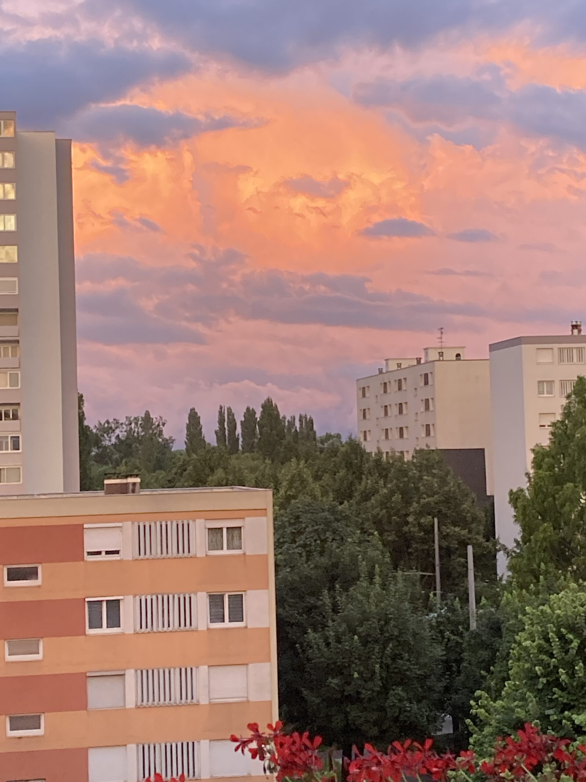 Storks nest on platforms on chimneys of old buildings, here Josephine’s palace in the Orangerie. The storks will build their nests there anyway, you can’t stop them, so the platforms keep the sticks from falling into the chimney, clogging it, and starting a fire. The Orangerie is the favorite place for storks to build nests.