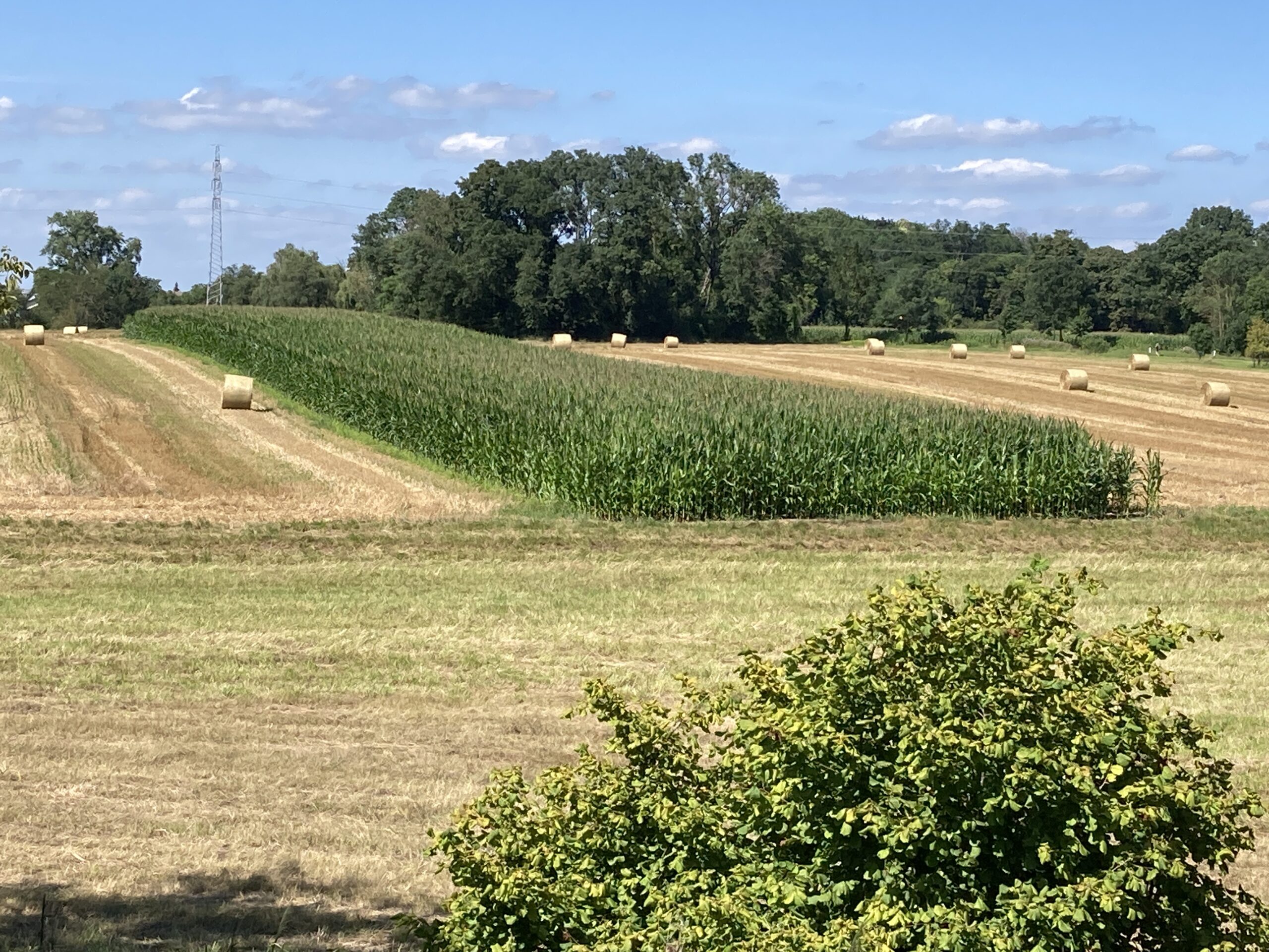 Fields of maize and wheat outside of Reichstett, north of Strasbourg, France. France has monocultures, just like America, but the fields are smaller, which means that pests spread more slowly and less pesticide is needed.