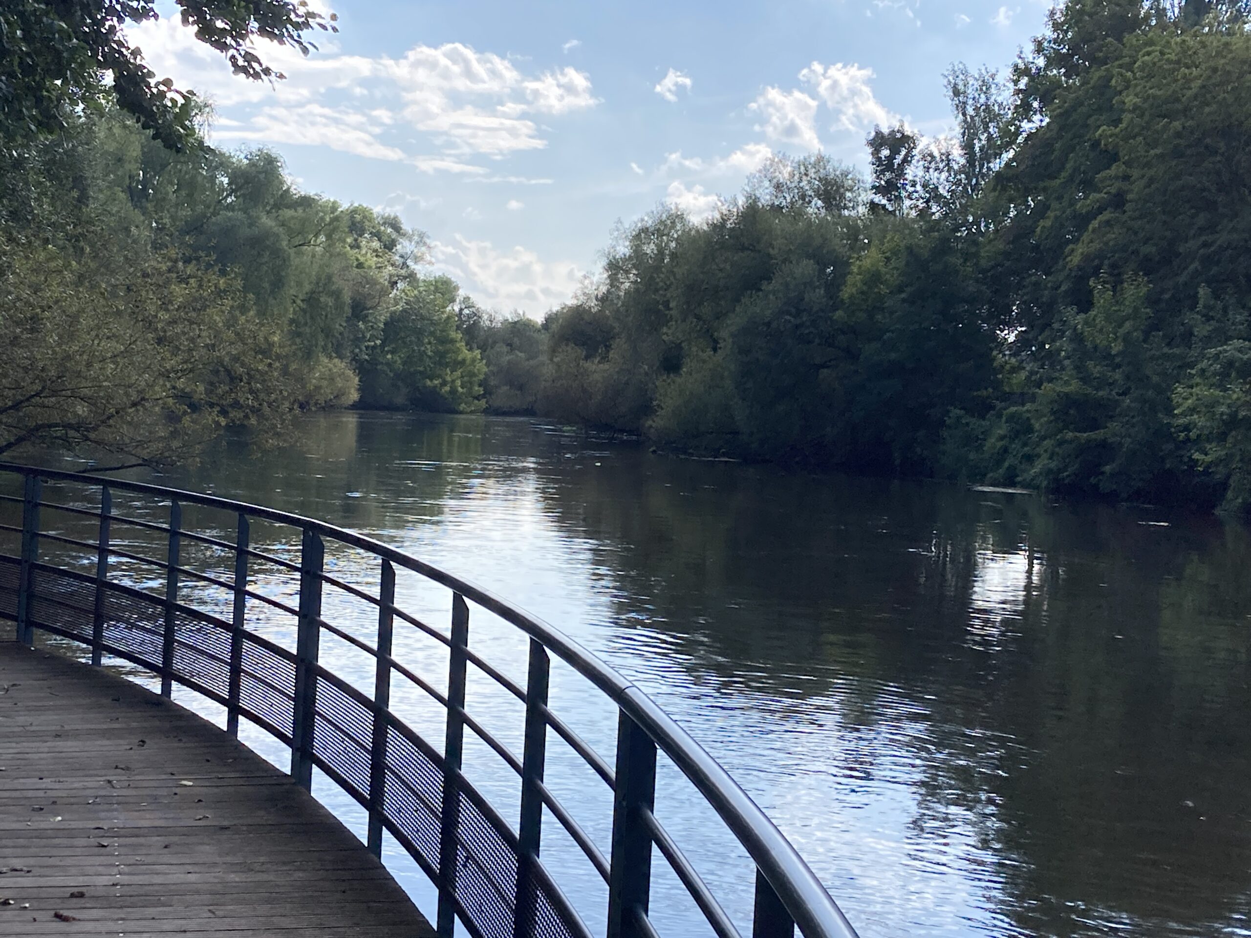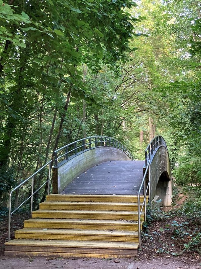 Footbridge near the north bank of the Ill River, near Cite d’Ill north of Strasbourg, France.