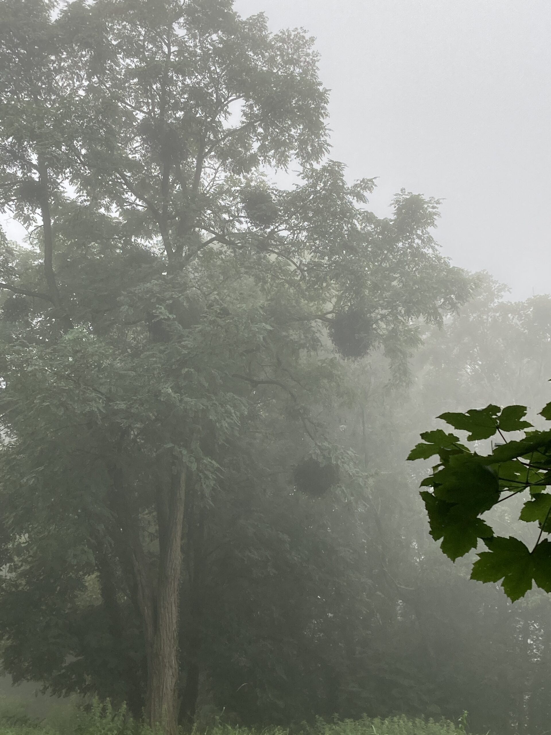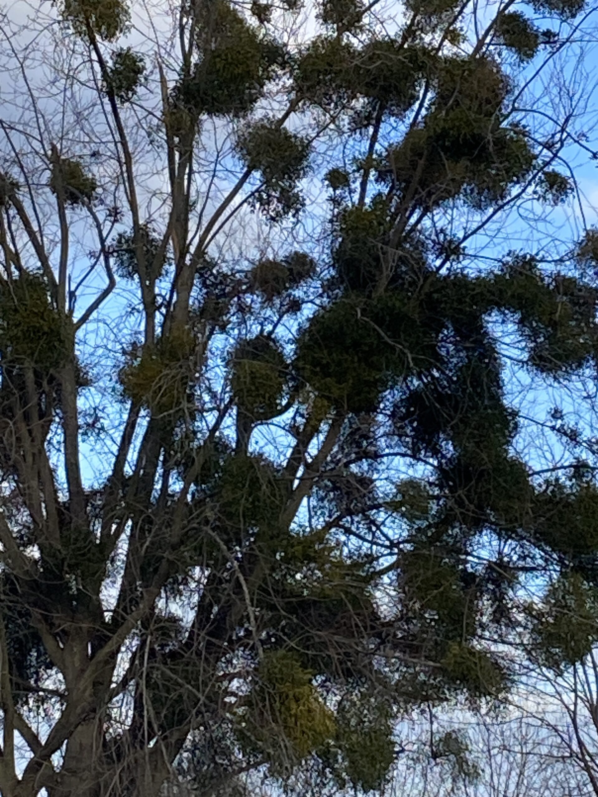 This poplar is heavily infested with gui (mistletoe; Viscum album). Near the Ill River north of Strasbourg.