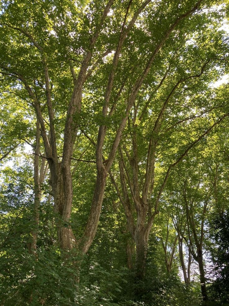 Plane trees (platanes communes) along the Piste de Fortes near Parc de Pourtales, north of Strasbourg. Along an old, paved military road.
