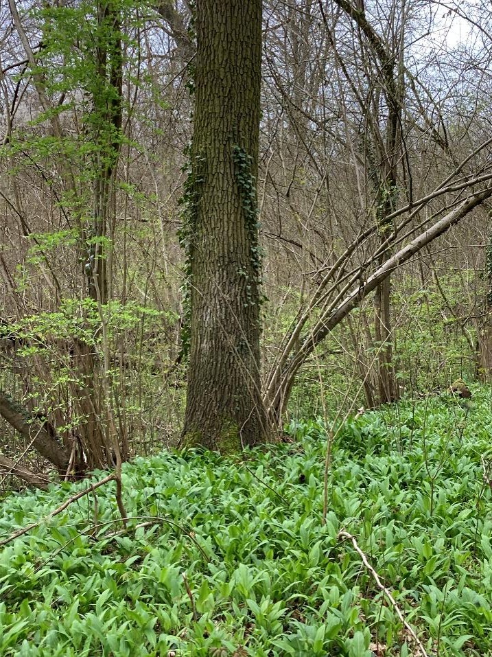 Springtime floodplain forest along Ill River north of Strasbourg, with ail-d’ours (bear garlic, Allium ursinum).