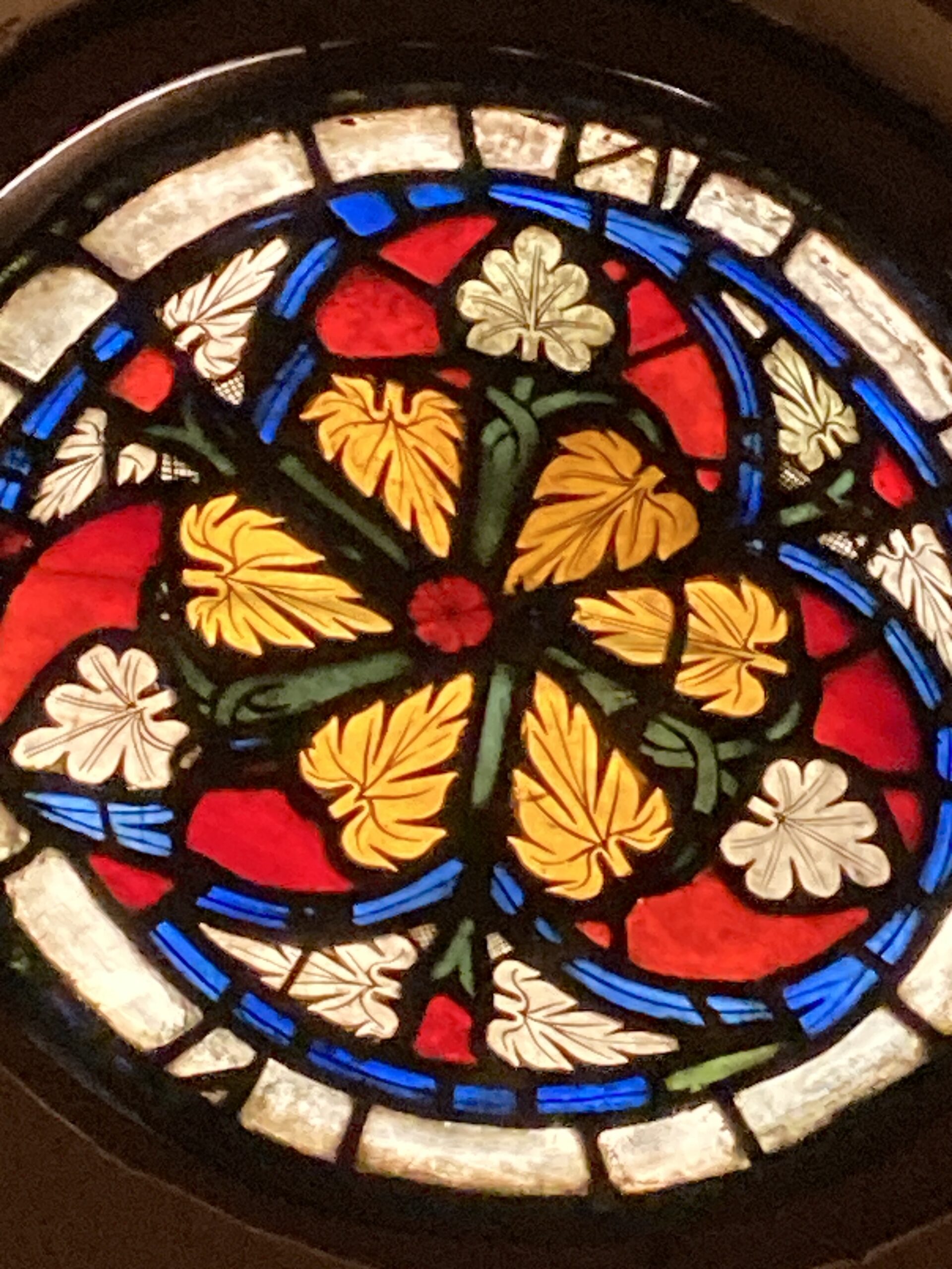 From the Museum of the construction of the Cathedral in Strasbourg, which contains many artifacts no longer in the cathedral. Stained glass window with botanical themes.