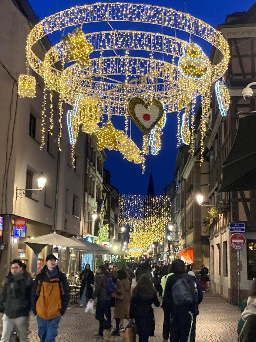 The Strasbourg Christmas Market, which fills Place Kleber and Place Broglie and other places, draws visitors from all over the world. “Marik” is Alsatian for market.