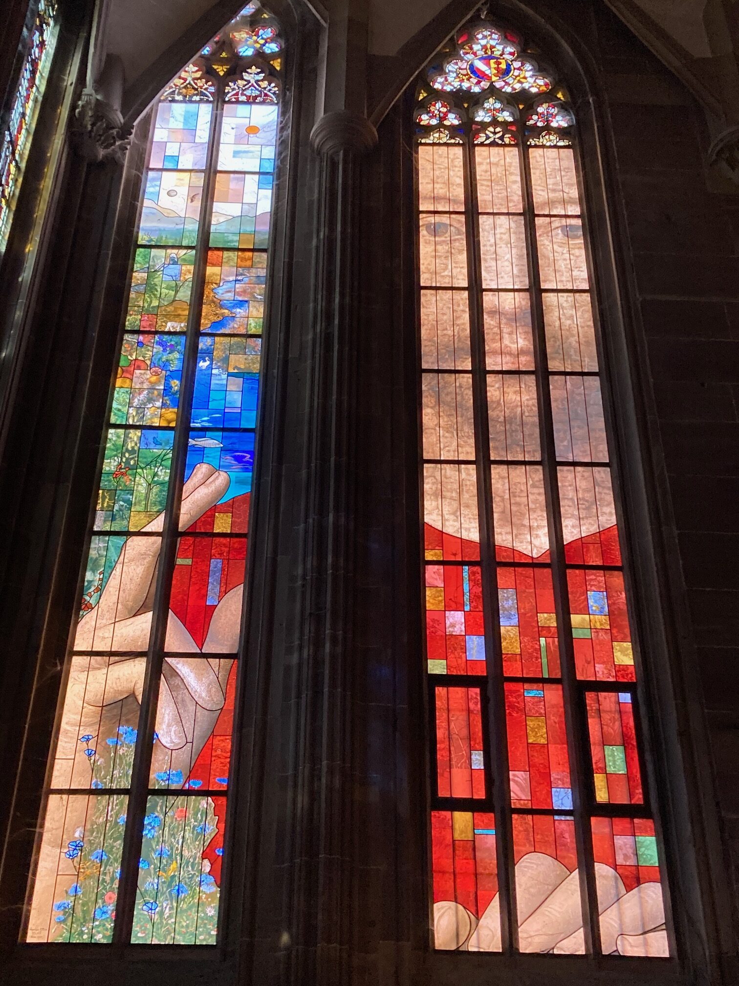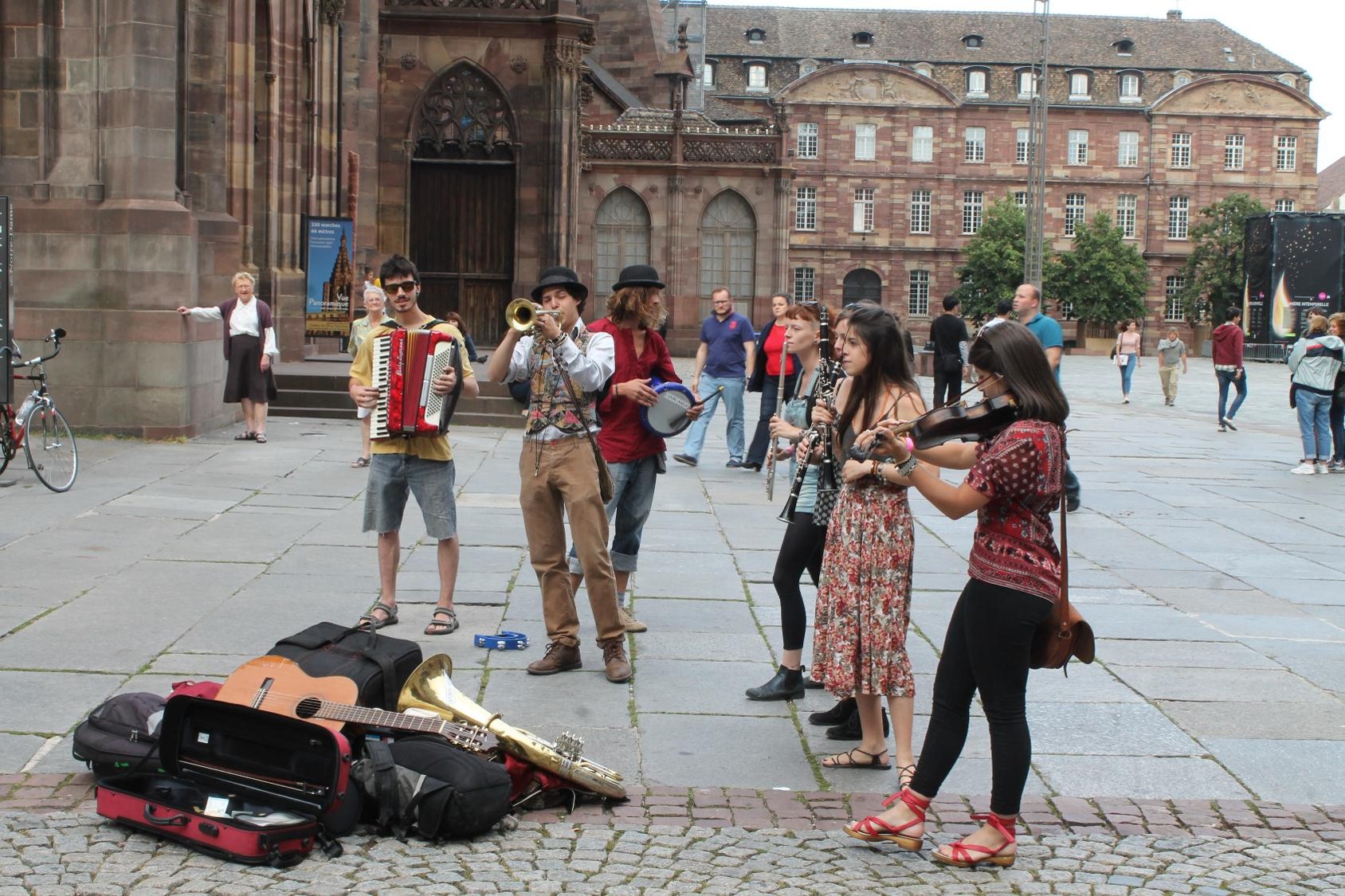 One day in 2016 a klezmer band showed up at the base of the Cathedral and played really fun music. The trumpet/euphonium player even danced around a little as he played. The Cathedral is at the center of centuries of oppression and killing of Jews in Strasbourg, including when Hitler stood at the Cathedral, but now they can celebrate being Jewish. But there is some lingering fear: antisemitic vandalism still occurs, and the band dispersed immediately after they played. Their performance was not announced, lest it attract antisemitic people.