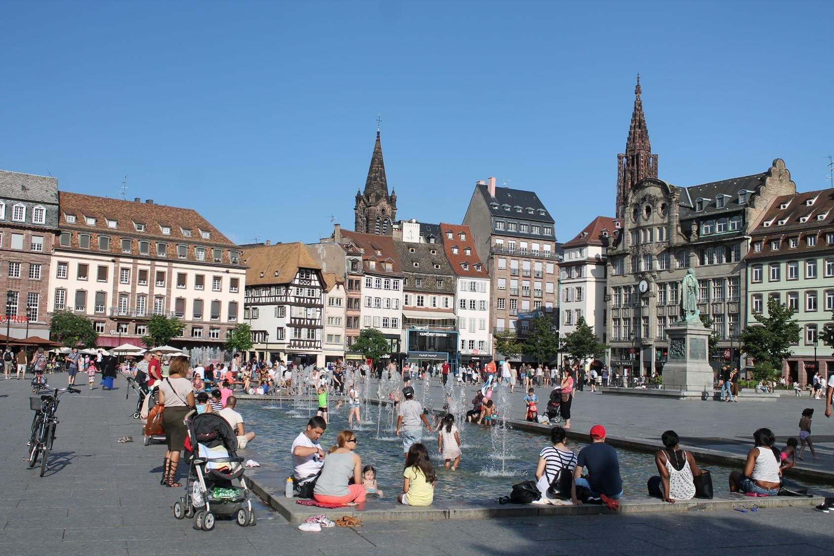 In the hot summer, the Place Kleber with its fountains is the place for families to bring their kids to go wading, in the shadow of the Cathedral and of General Kleber.