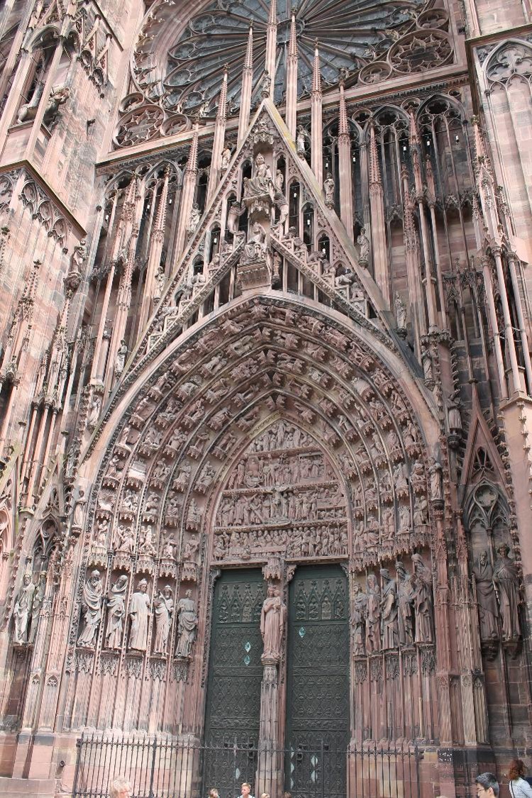 The facade of the Cathedral in Strasbourg contains hundreds of sculptures crammed together.