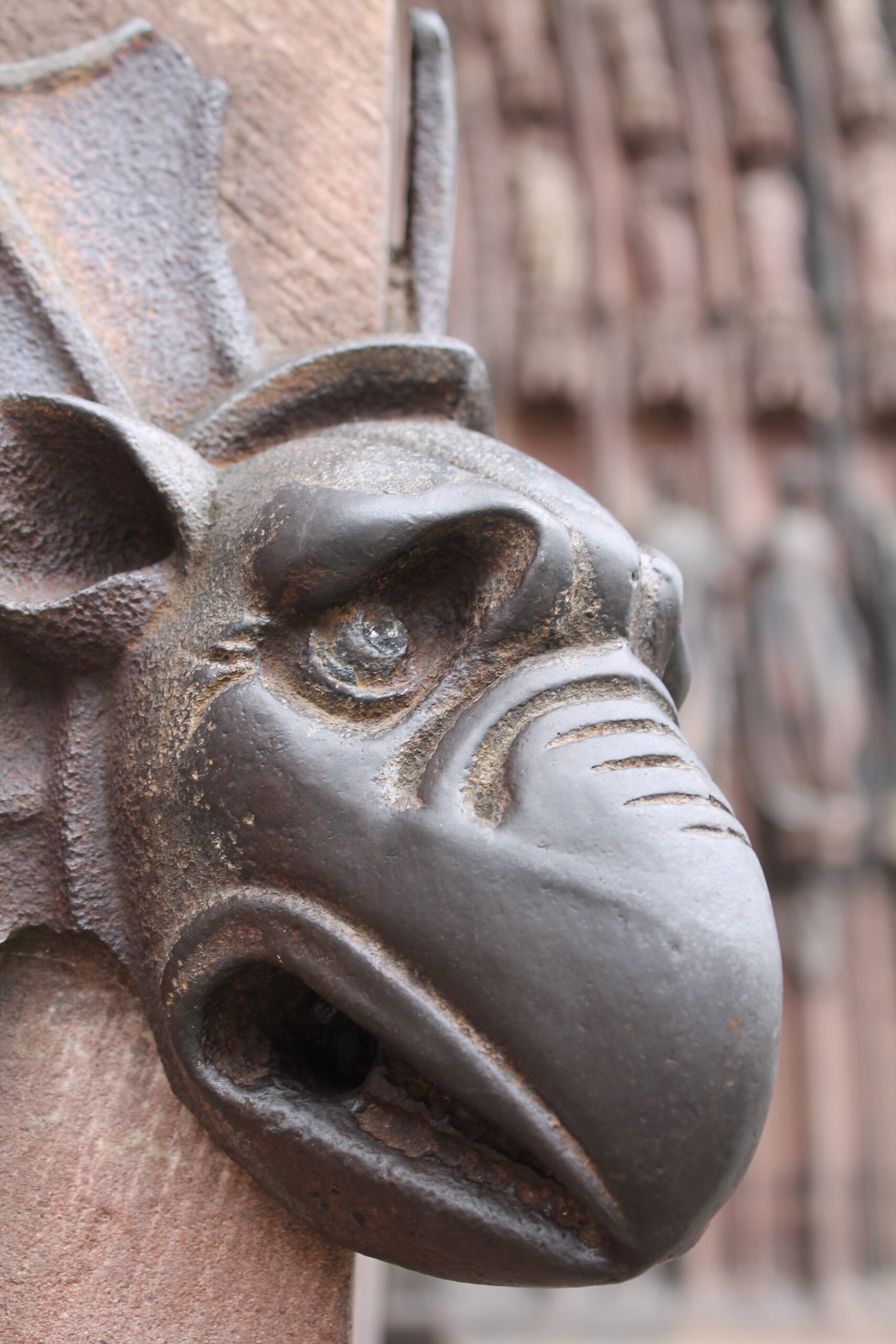 A gargoyle outside of the Cathedral in Strasbourg. Gargoyles were decorative rain spouts.