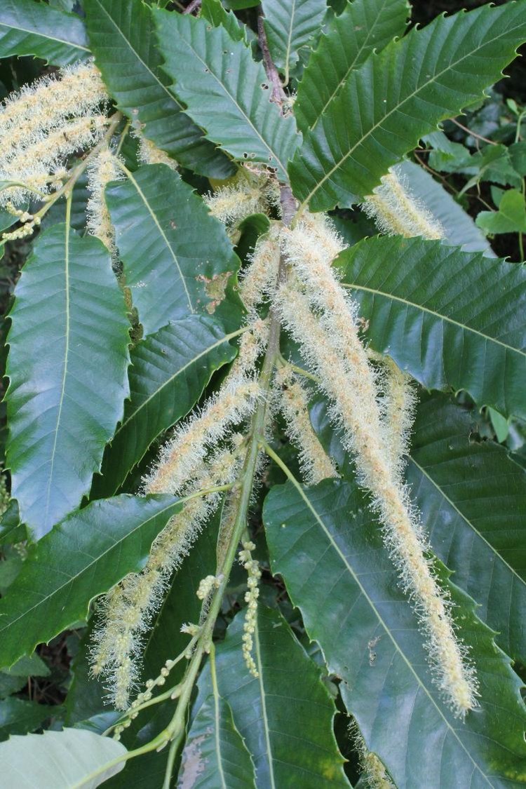 Male flowers of the European chestnut Castanea sativa in the Vosges Mountains of France.